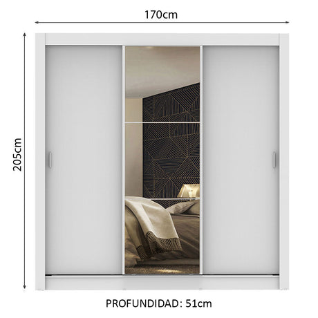 Closet Monaco 3 Puertas Corredizas 1 Espejo