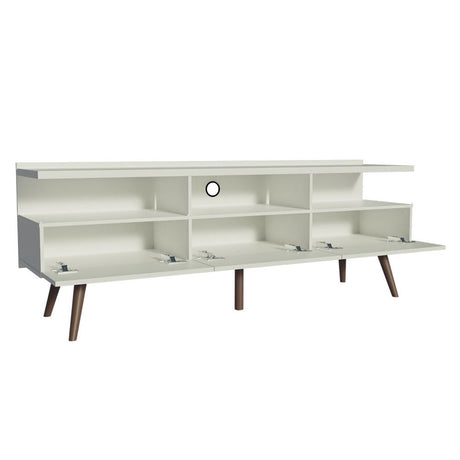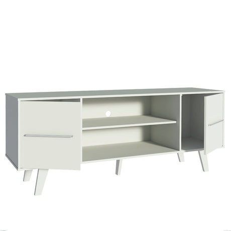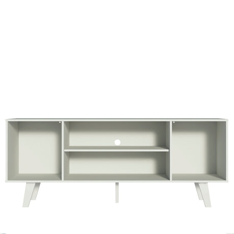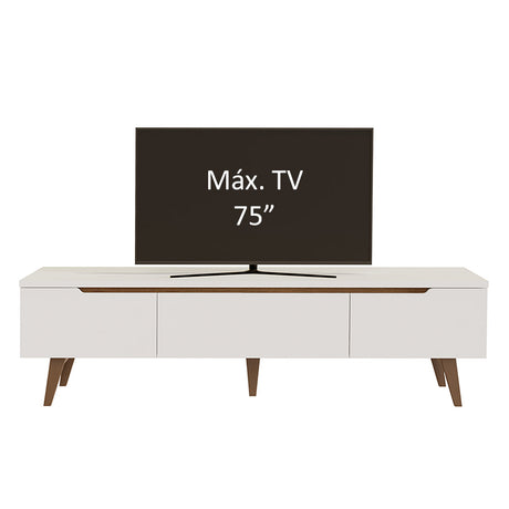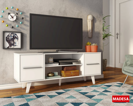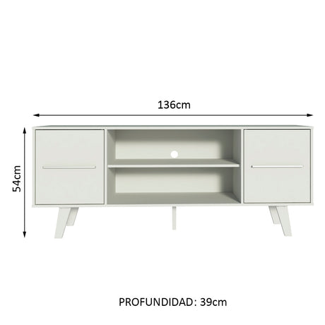 - Si el espacio es reducido, opta por un rack compacto con buen almacenamiento interno y nichos. Las puertas correderas son una excelente idea para ahorrar espacio y aprovechar al máximo cada rincón.