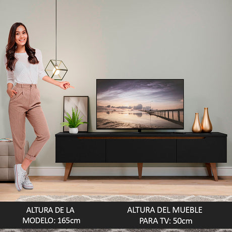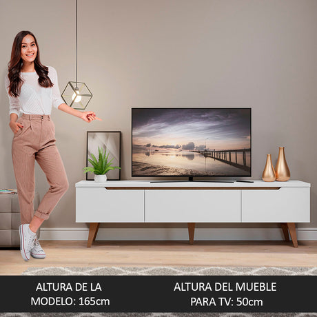 El panel de TV añade un toque moderno y elegante, optimizando el espacio y ocultando cables. Es ideal si buscas darle un aire contemporáneo a tu sala.