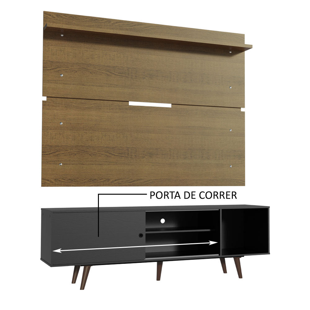 Desarrollado con base en tendencias contemporáneas de diseño, el rack ofrece una distribución cuidadosamente planificada: cuenta con cuatro nichos de diferentes tamaños y una puerta corrediza. Esto ofrece espacio para decoración, dispositivos electrónicos, libros y mucho más. Además, las patas aportan belleza y mayor estabilidad al mueble.