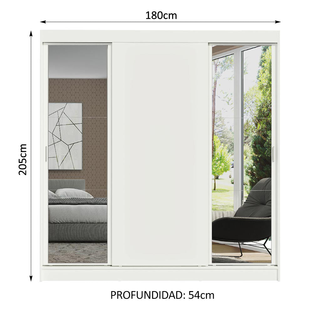 Closet Reno 3 Puertas Corredizas 2 Espejos