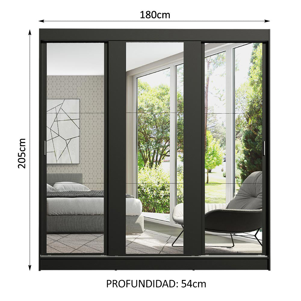 Medidas totales del clóset: 205 cm de altura x 180 cm de ancho x 54 cm de profundidad.