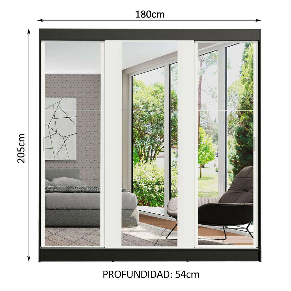Medidas totales del clóset: 205 cm de altura x 180 cm de ancho x 54 cm de profundidad.